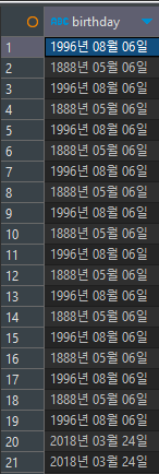 SELECT date_format(birthday, '%Y년 %m월 %d일') birthday FROM student;