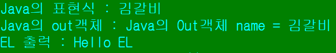 Java의 out객체 : <% out.print("Java의 Out객체 name = " +name); %>